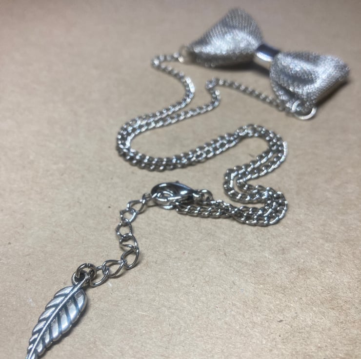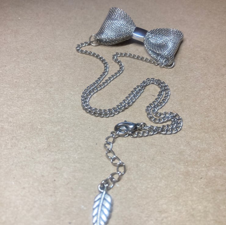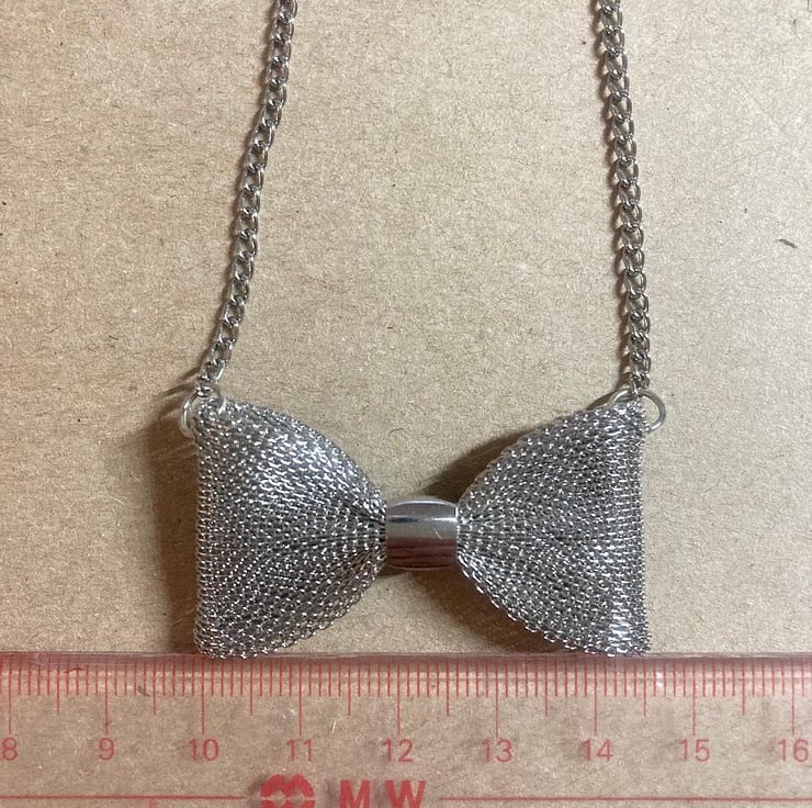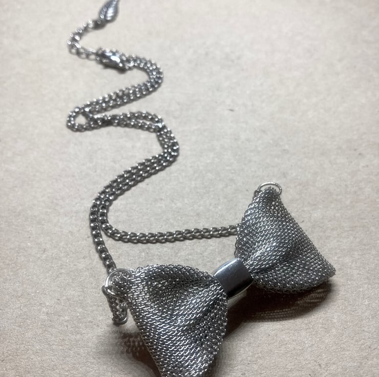 Upcycled Handmade Silver Mesh Bow Necklace - Bow Tie Necklace - costume jewelry - gift for her