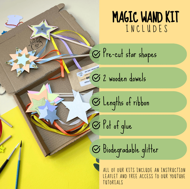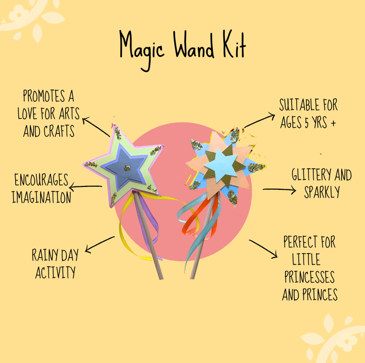 Fairy, prince, princess or wizard? Everyone knows you can't be magic without a wand! Let your little ones create their own magic with this magic wand kit. This kit includes the resources to make 2 magic wands - plenty of wands for an afternoon of spell and mischief making!