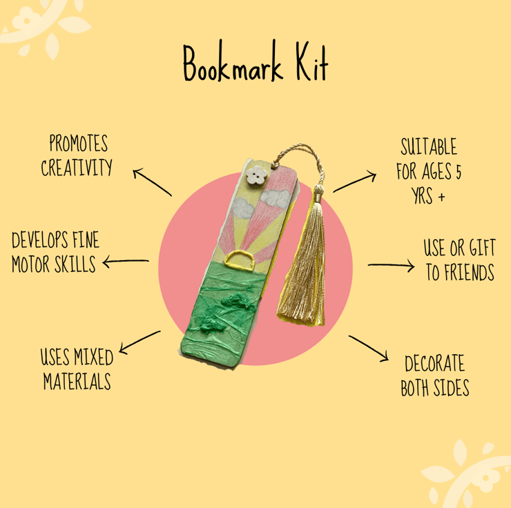 Reading is great for everyone! So when you’re reading that fairy story and tucking the little ones in, why not mark the page with a bookmark decorated by them! This bookmark kit includes great resources to colour, stick, design and decorate two wooden bookmarks for all of those reading occasions.