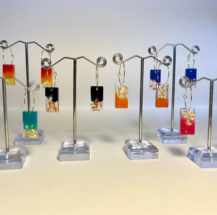 Each pair of earrings is unique and may vary a little from the photo as resin moves fluidly.