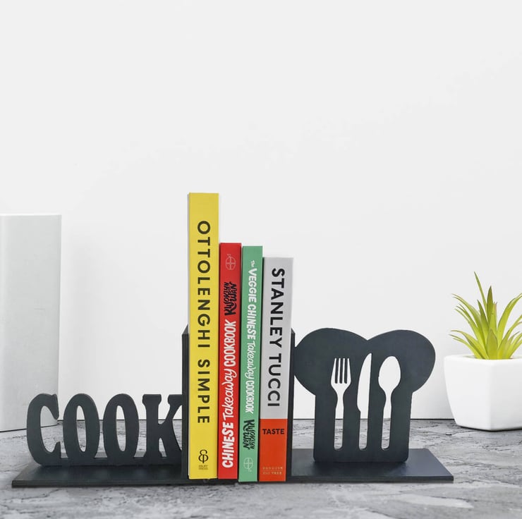 Infuse a contemporary flair into your home kitchen with these charming Bookends featuring a cooking chef theme. An ideal gift for aspiring chefs and food enthusiasts.