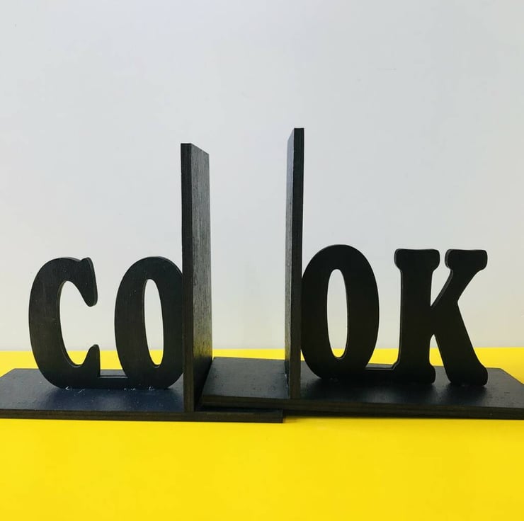 Enhance the look of your bookshelf or kitchen with our distinctive COOK bookend accessory.