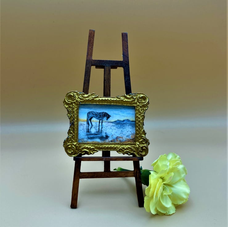 Measuring 4 cm x 2.7 cm (6 cm x 4.5 cm inc. frame). Dolls House 1:12th scale.