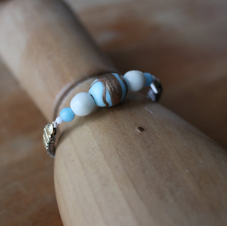 Beautiful Upcycled Handmade Baby Blue Ceramic and Glass Beads - Stainless Steel stretchy bracelet - gift for Valentine - gift for her