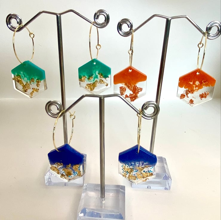 Each pair of earrings is unique and may vary a little from the photo as resin moves fluidly.