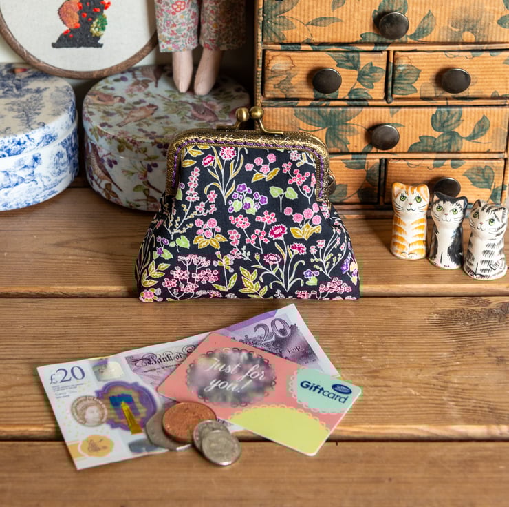 This coin purse is the perfect size to pop into your pocket with a little cash, a key and maybe a lip balm, when you want to travel light - you could also just squeeze a credit card in there. It's also a great way to wrap up a money gift for a birthday or holiday gift, or to give as a bridesmaid gift.
