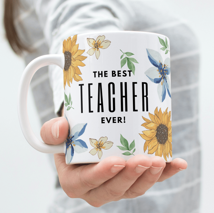The Best Teacher Ever Flower Mug, Unique Gift For Teachers, Teacher Appreciation