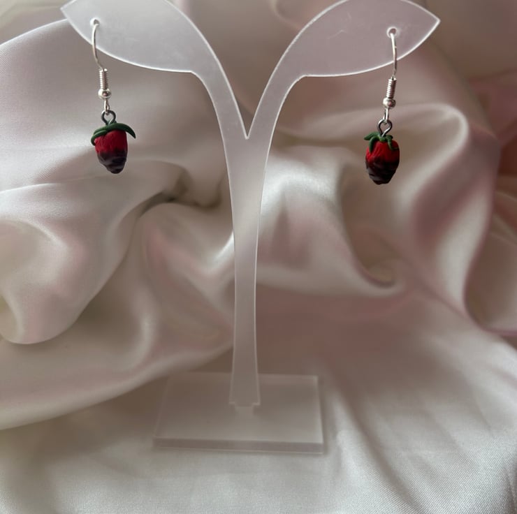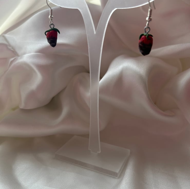 Materials used: Polymer clay, polymer clay adhesive, stainless steel/silver or gold plated stainless steel, glue adhesive, UV resin, acrylic paint.
