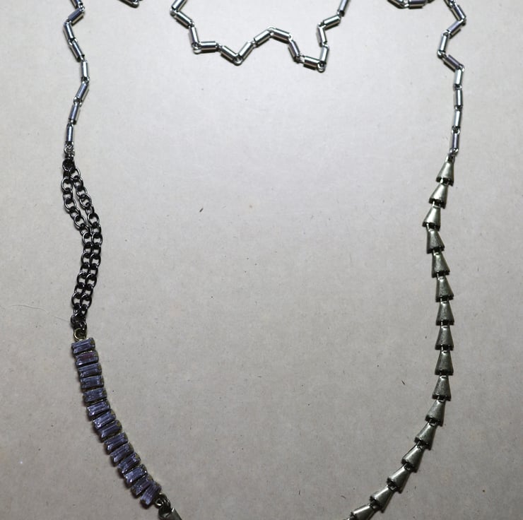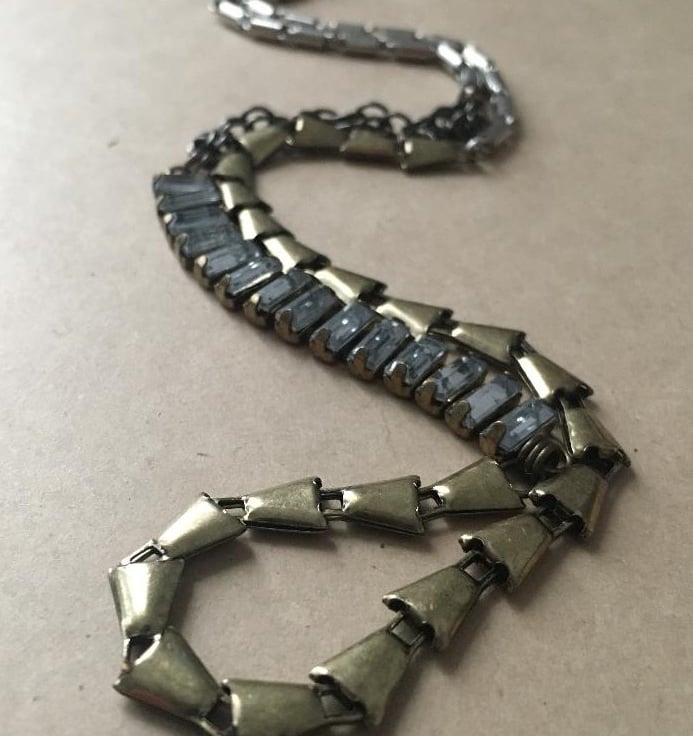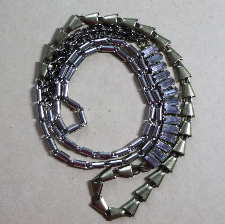 Up-cycled mixed metal - faux sparkling clear stone - necklace - one off item