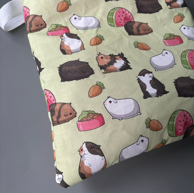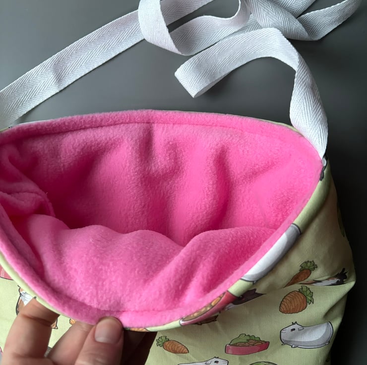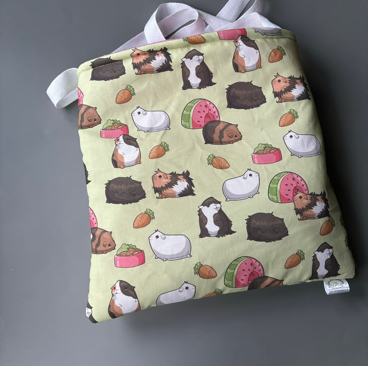 These bonding bags are ideal for carrying your guinea pig or keeping them close while you are busy doing life! They can be used for short trips outdoors. They are made from cotton and fleece with a layer of padding on the inside for softness.