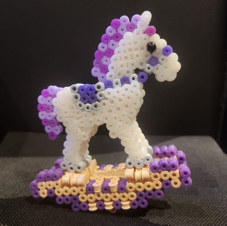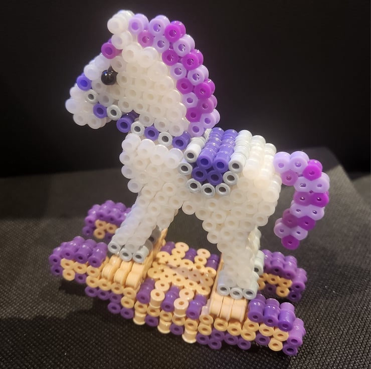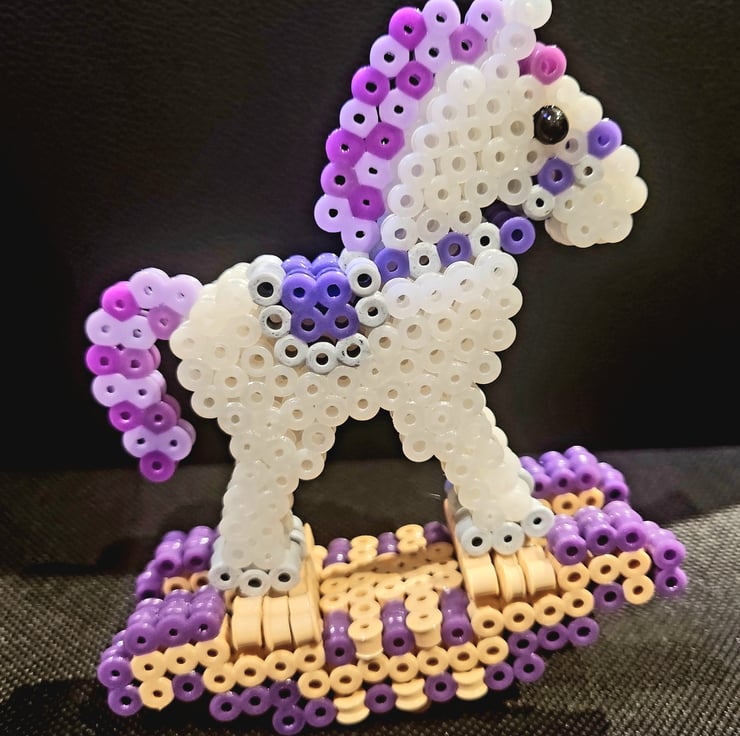 This stunning piece is a 3D Model that showcases a small-sized rocking-horse. Handmade with hama beads, this ornament is crafted with precision and attention to detail. It's perfect for those who are looking to add a touch of art to their collection.