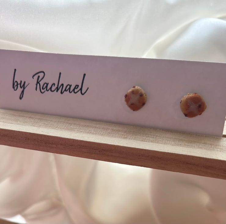 Materials used: Polymer clay, polymer clay adhesive, stainless steel/silver or gold plated stainless steel, glue adhesive, UV resin, acrylic paint.
