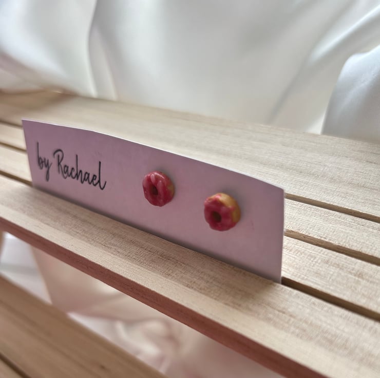 Materials used: Polymer clay, polymer clay adhesive, stainless steel/silver or gold plated stainless steel, glue adhesive, UV resin, acrylic paint.