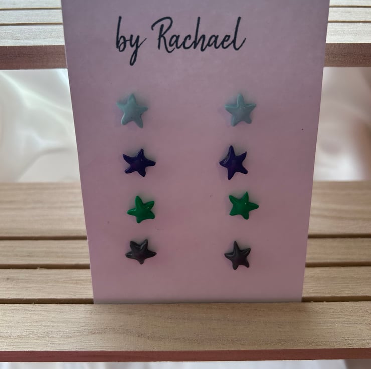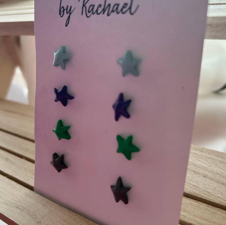 Materials used: Polymer clay, polymer clay adhesive, stainless steel/silver or gold plated stainless steel, glue adhesive, UV resin, acrylic paint.