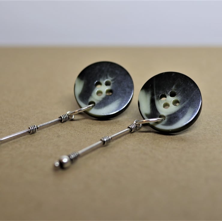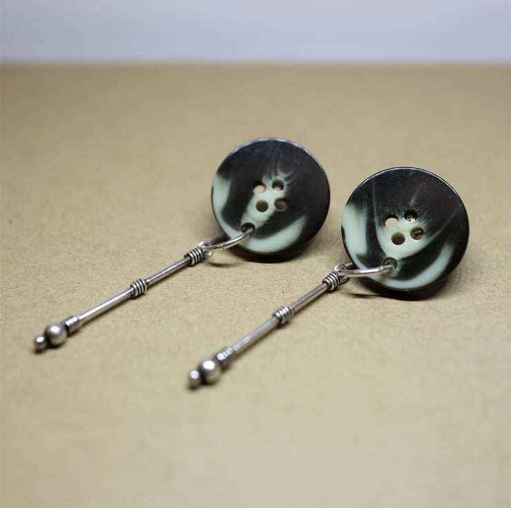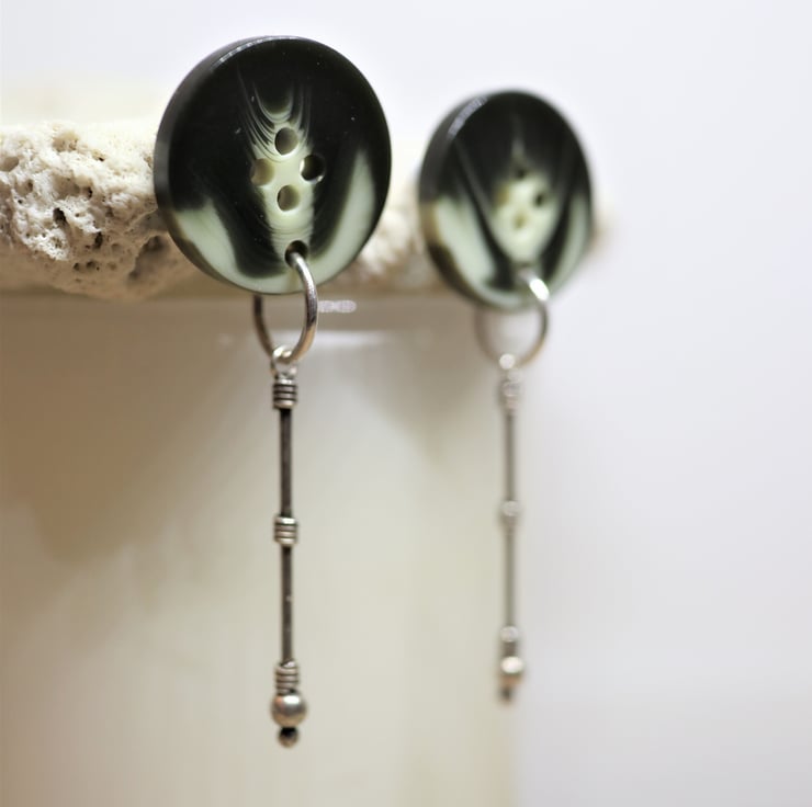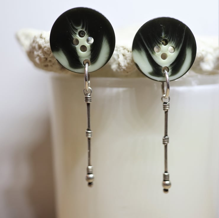 Black and cream vintage button earrings - 925 silver findings - one of a kind