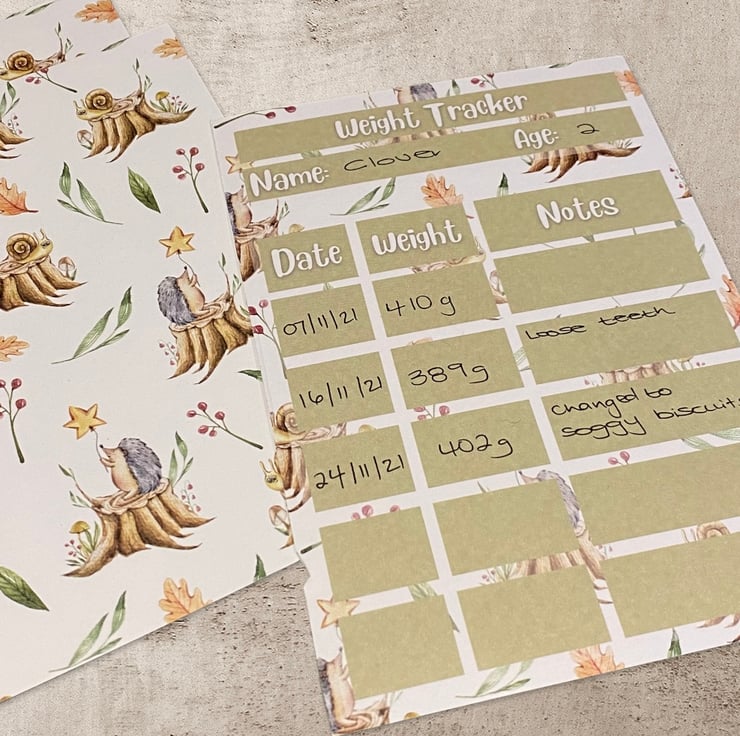 Keep track of your little one’s health with these handy weight tracker cards. Pick a day of the week to weigh your hog and complete a line each week. Stay on track by completing a card each month by regularly checking and logging your hog’s health.