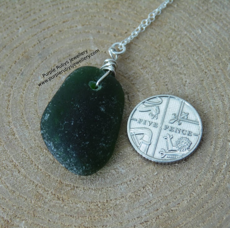 Deep Green Lyme Regis Dorset Sea Glass Necklace N606