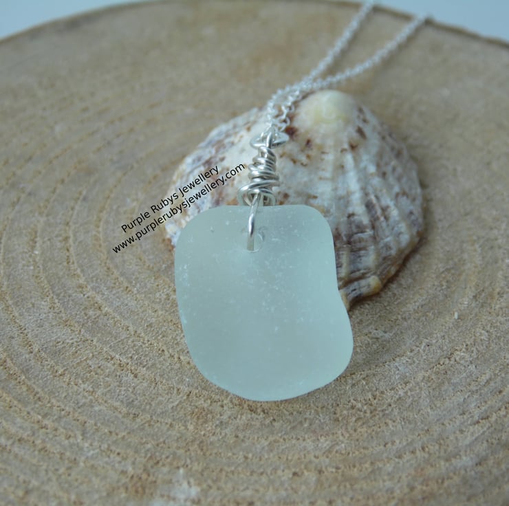 A beautiful piece of frosted white Lyme Regis, Dorset sea glass wire wrapped with silver wire.