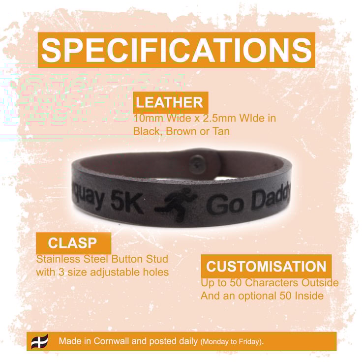 5K Runners Bracelet - Leather - Personalised - Choice of Colours - Adjustable