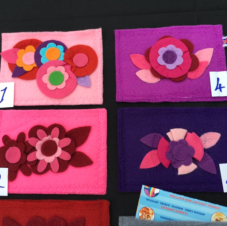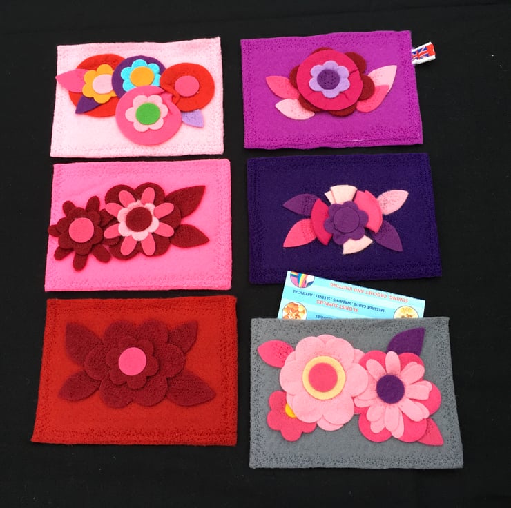 I made them from felt with a stabiliser backing and added the stylised flowers by felting together, by machine.