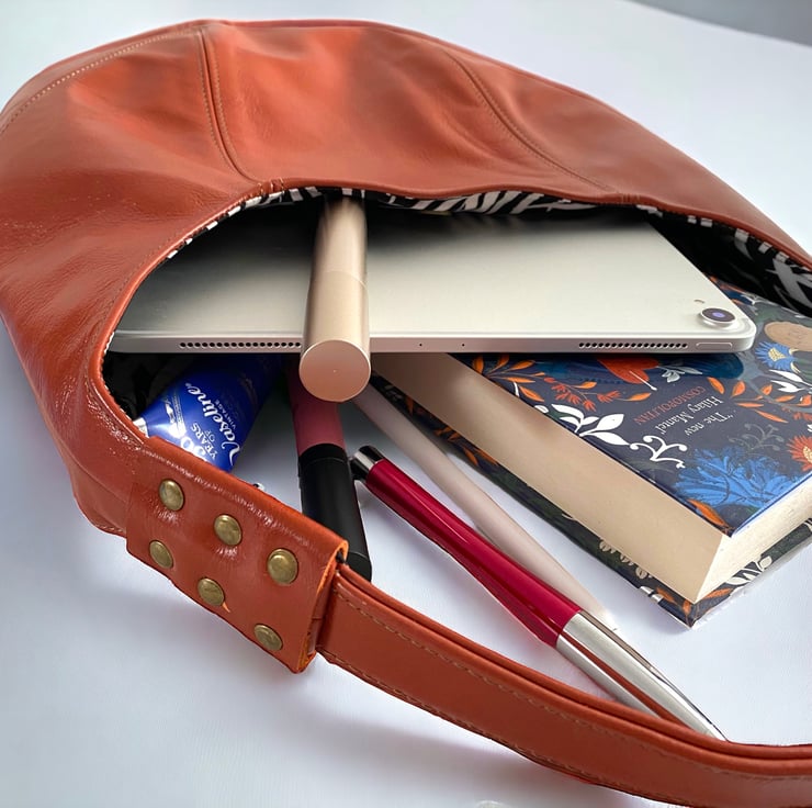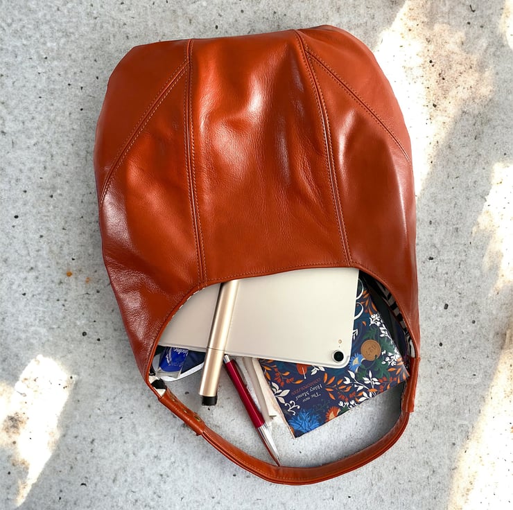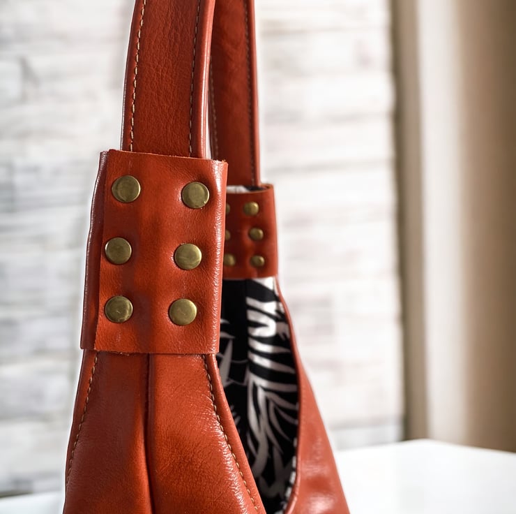 You can’t beat a fabulously simple slouch bag and when I saw this gorgeous, burnt orange leather, I knew it must be a marriage made in heaven! I hand crafted this bag using the ‘Estrella’ bag by Oro Rosa.