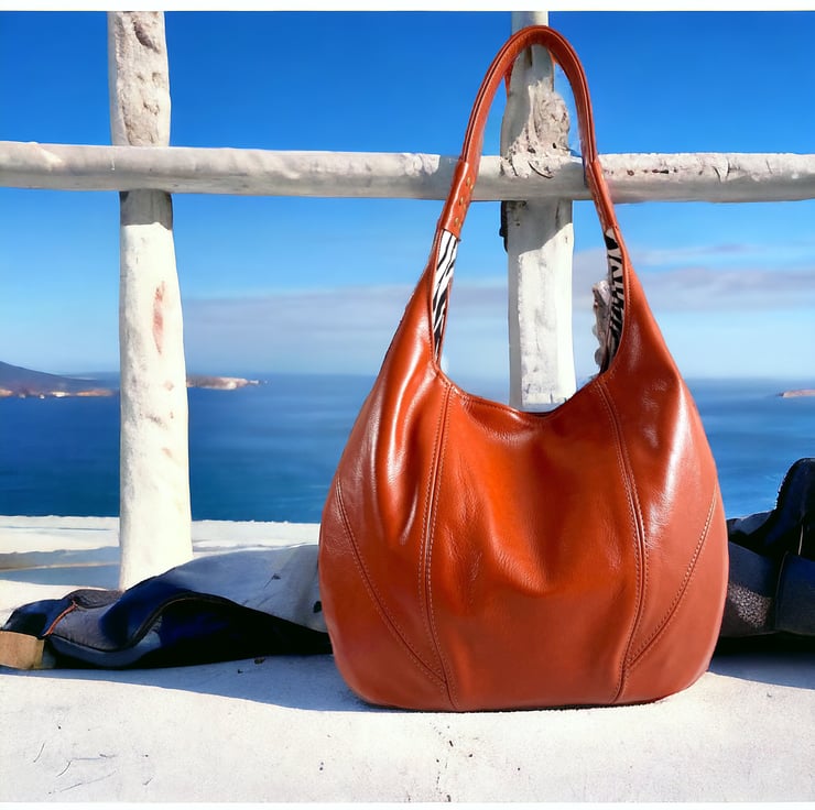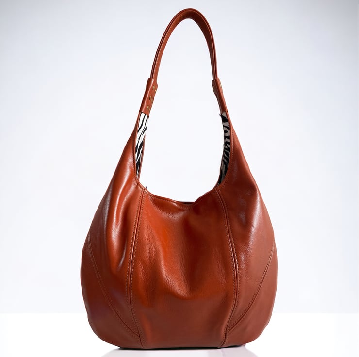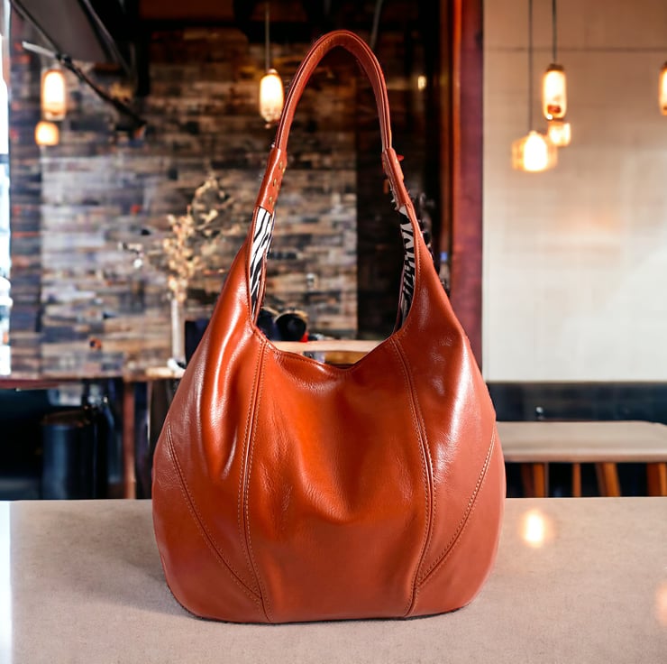Step into the world of sustainable fashion with this exceptional bag. Crafted with meticulous care from eye-catching burnt orange leather, it stands as a testament to the beauty of upcycling. By rescuing materials from their destined fate in landfills, this bag showcases the transformative power of eco-conscious design.