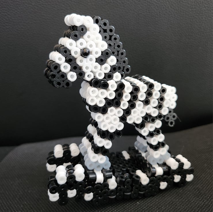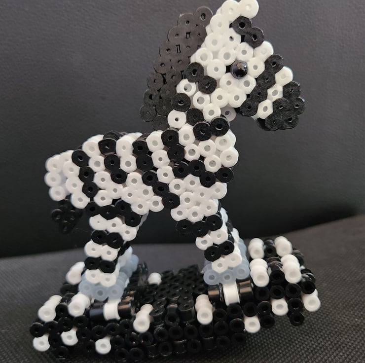 This stunning piece is a 3D Model that showcases a small-sized rocking-horse Zebra. Handmade with hama beads, this ornament is crafted with precision and attention to detail. It's perfect for those who are looking to add a touch of art to their collection.