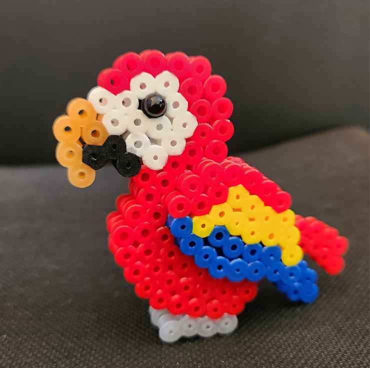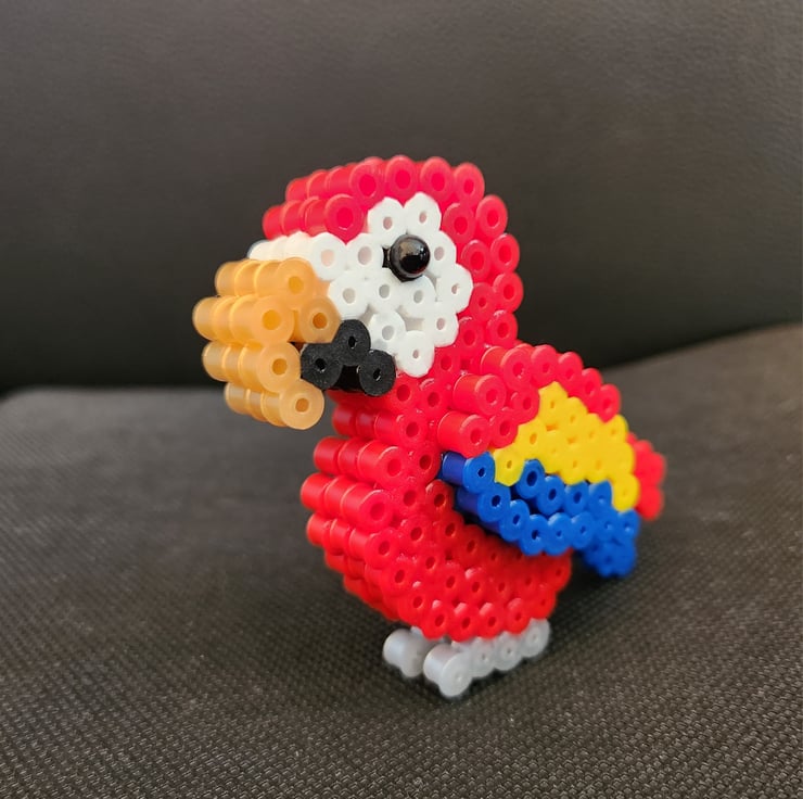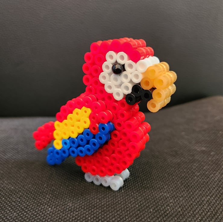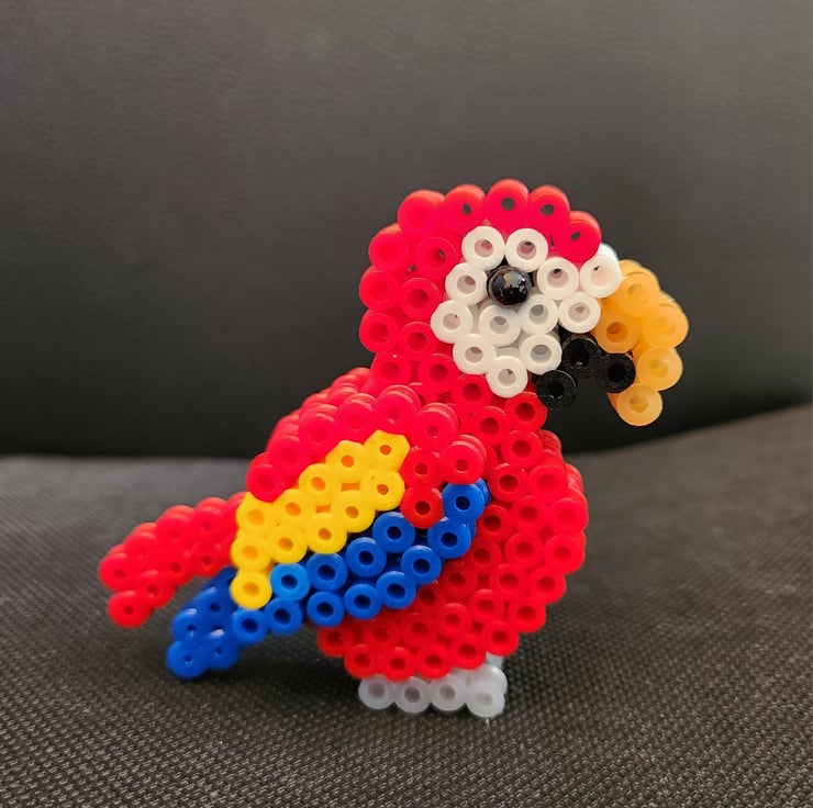 Small 3d Macaw parrot made out of Hama beads measuring 7 x 7 cm great for any parrot ornament collector.