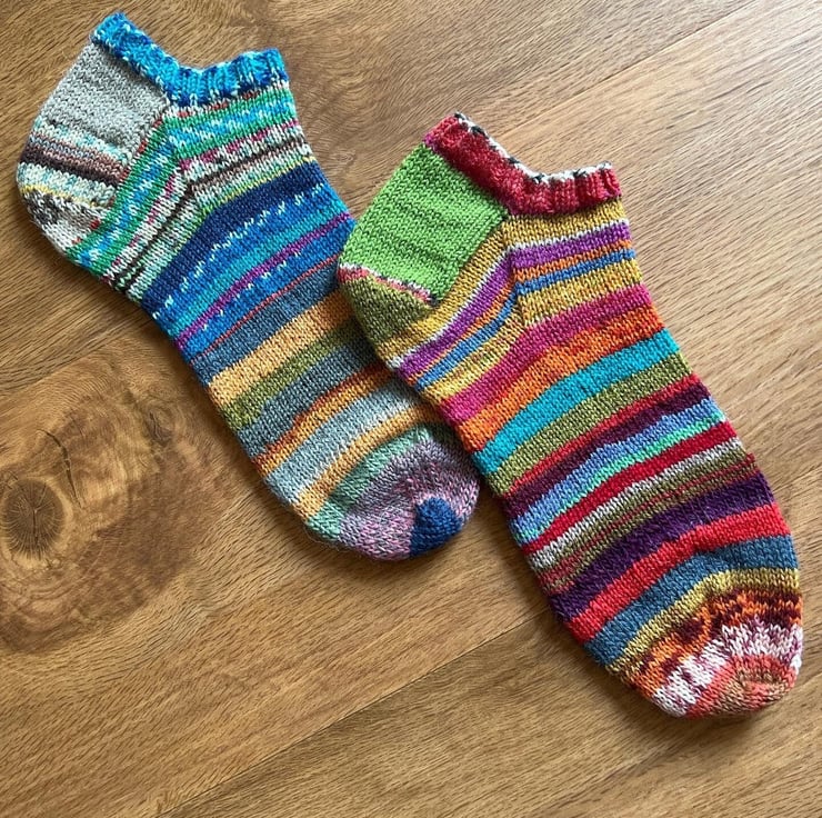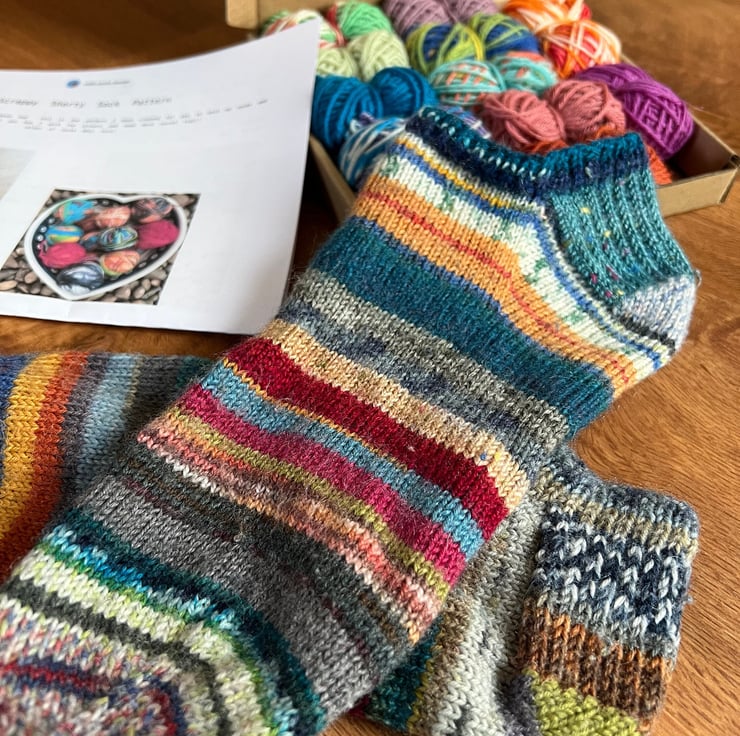 Scrappy odd sock kit in a variety of colours. I have created this sock knitting kit so you can all create my unusual bespoke odd socks. I will tell you all the instructions of how to knit these socks and some more special tips. Colours WILL vary as we all want bespoke socks don t we!
