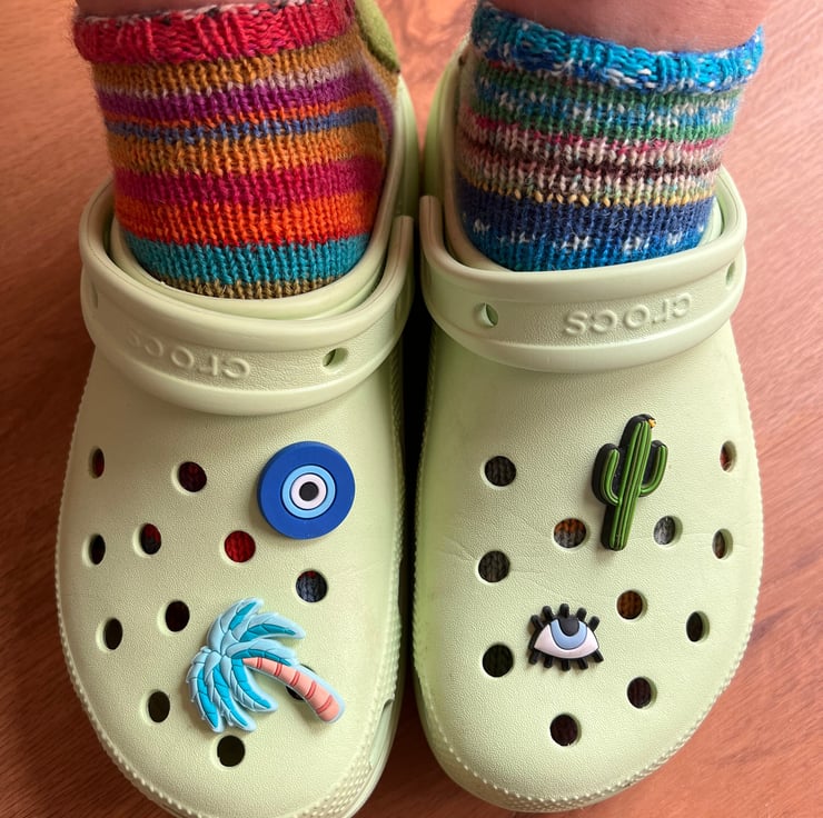 I have started including West Yorkshire Spinners sock yarn into my kits and some may now have Zandra Rhodes new yarn Rainbow and colours from their bird range. I also use Opal and Drops.