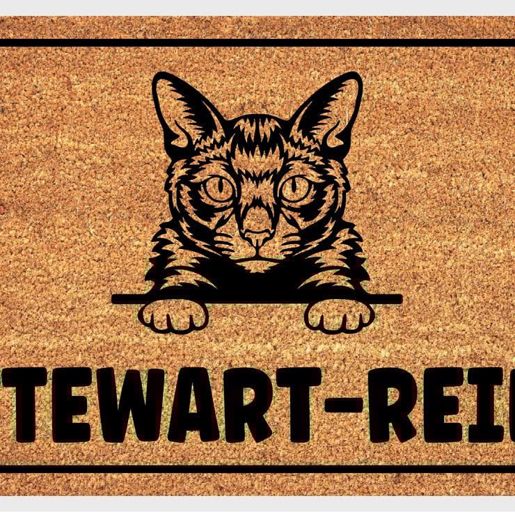 Russian Blue Cat Door Mat - Personalised Russian Blue Cat Welcome Mat - 3 Sizes