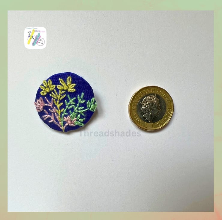 Beautiful blue fabric and pastel thread embroidered pin brooch is ready to dispatch! Simple and elegant brooch with beautiful floral designs. Ideal for gifting .