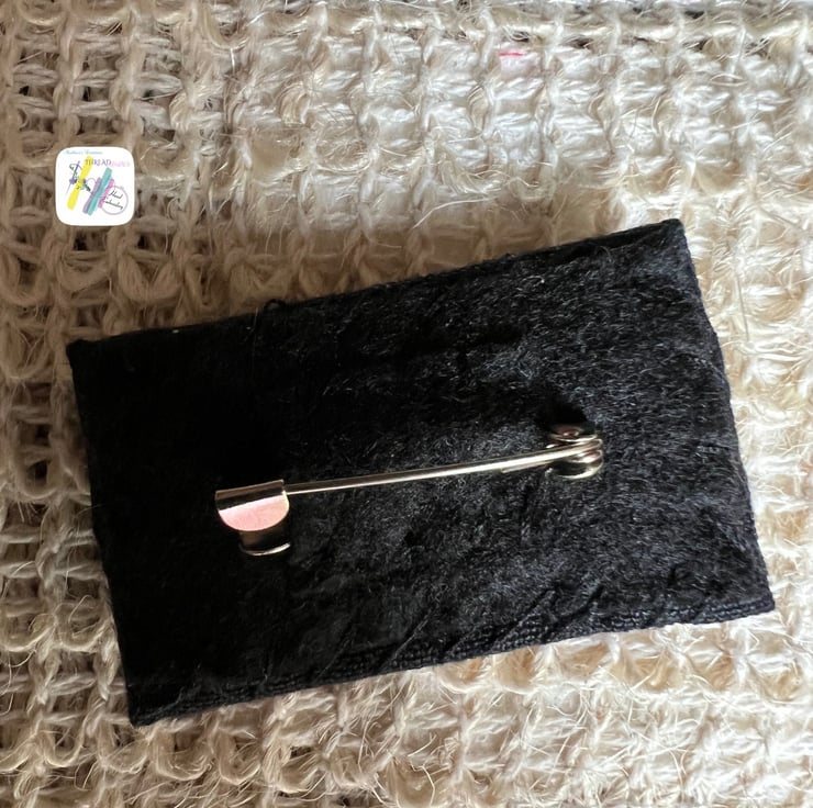 Material used :- brooch pin, Linen fabric,Wooden cutout , DMC embroidery threads, sewing thread and felt