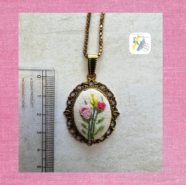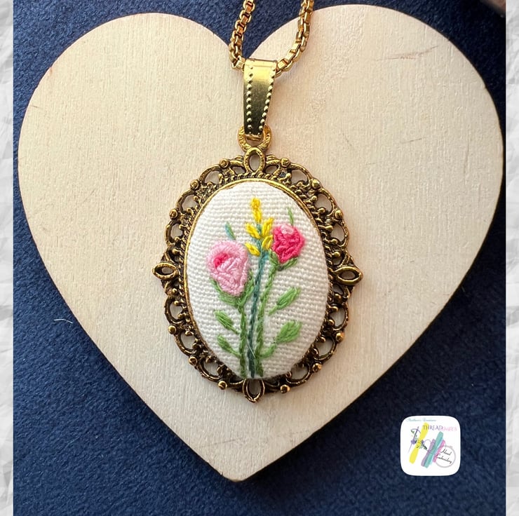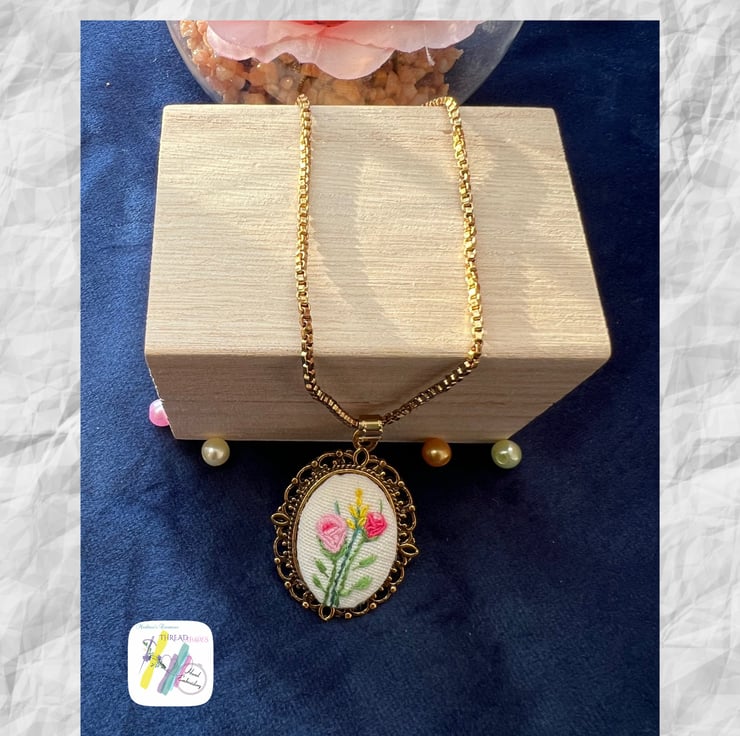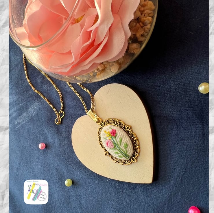 This small beautiful hand embroidered pendant is ready to ship! Tiny floral design done with different embroidery stitches. Beautiful colours enhances the look of the pendant. As the size becomes smaller the work to be done is more intricate. Simple and elegant design ideal for gifting or add grace to your appearance!