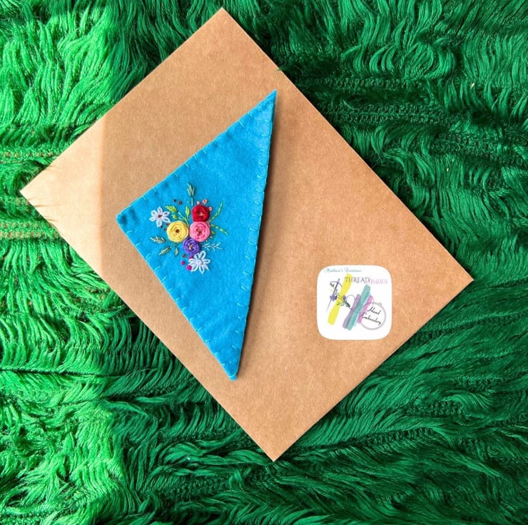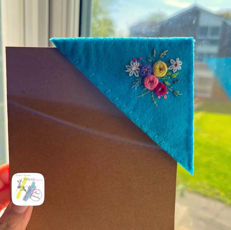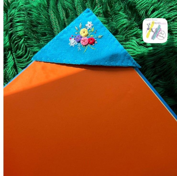 Product:- Hand embroidered felt corner bookmark