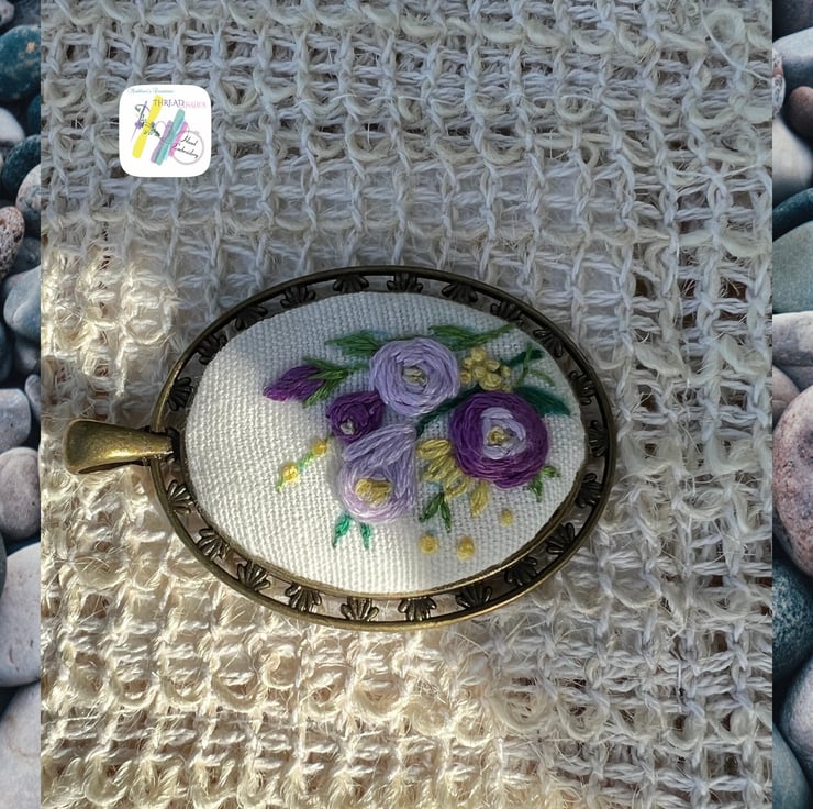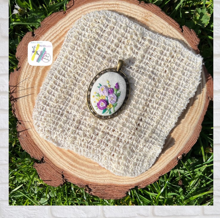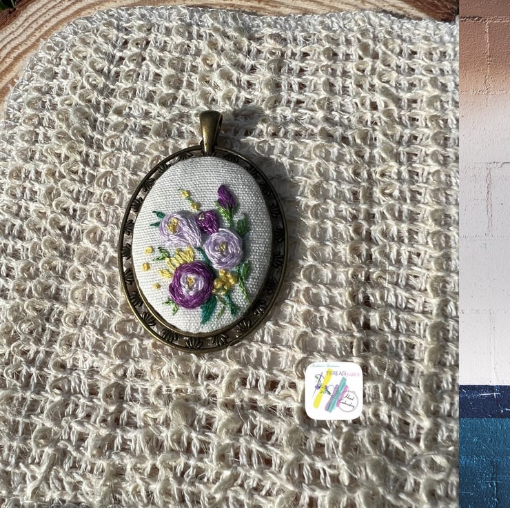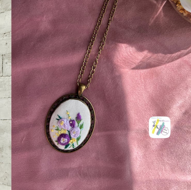This beautiful hand embroidered pendant is ready to ship. Vintage look with beautiful pastel colours rose embroidery done with DMC embroidery threads. It is with matching chain.