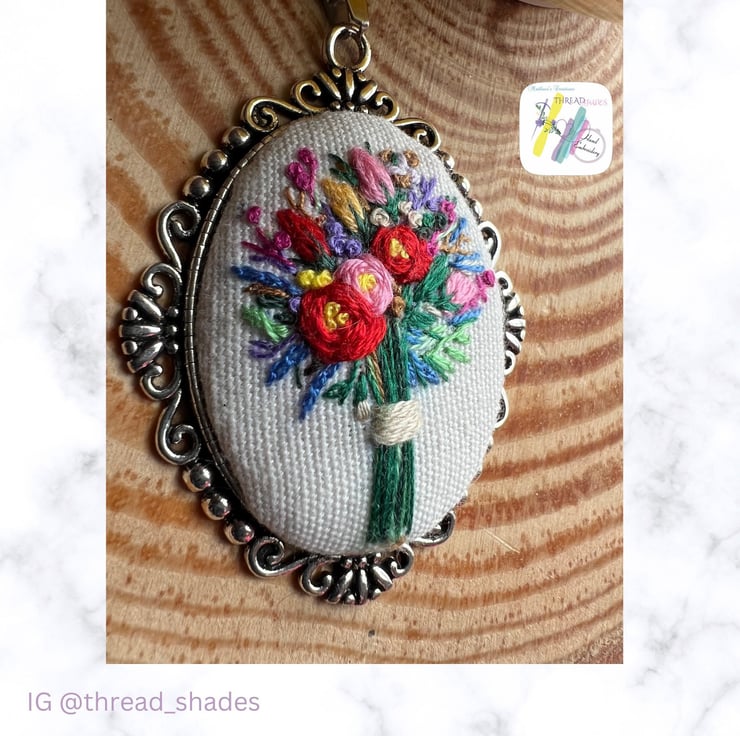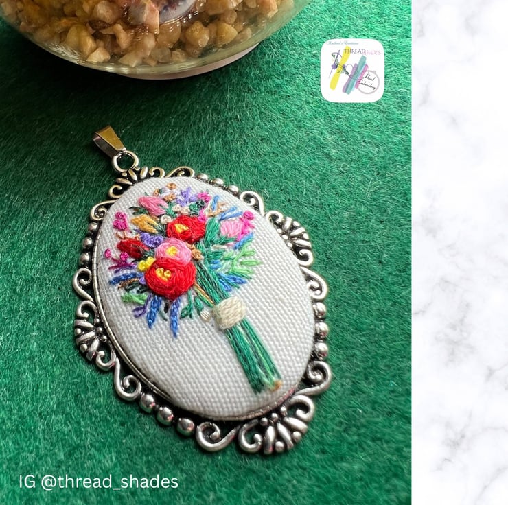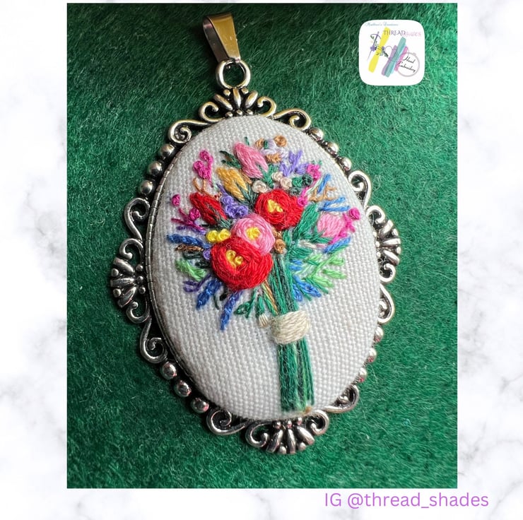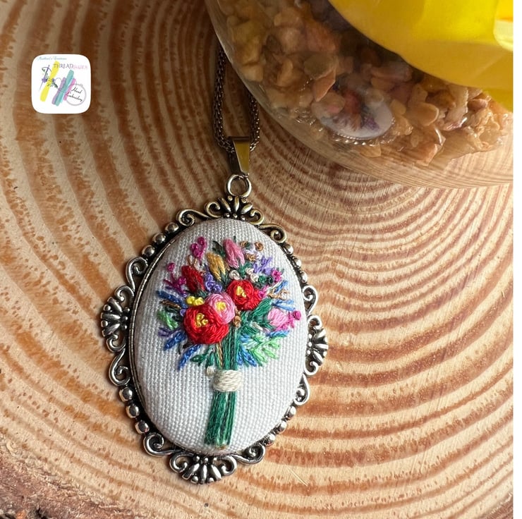 This beautiful hand embroidered necklace is ready to ship! It is ideal for gifting to your loved one. Beautiful floral bouquet design with delicate embroidery making it look elegant. Used handwoven fabric and DMC threads .