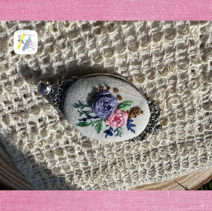 Beautiful antique silver hand embroidered pendant with vintage border.