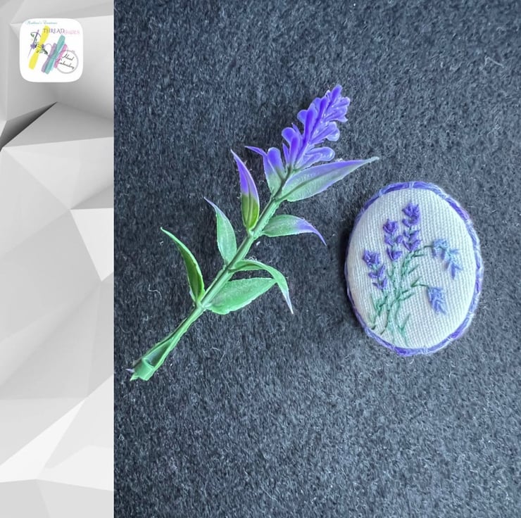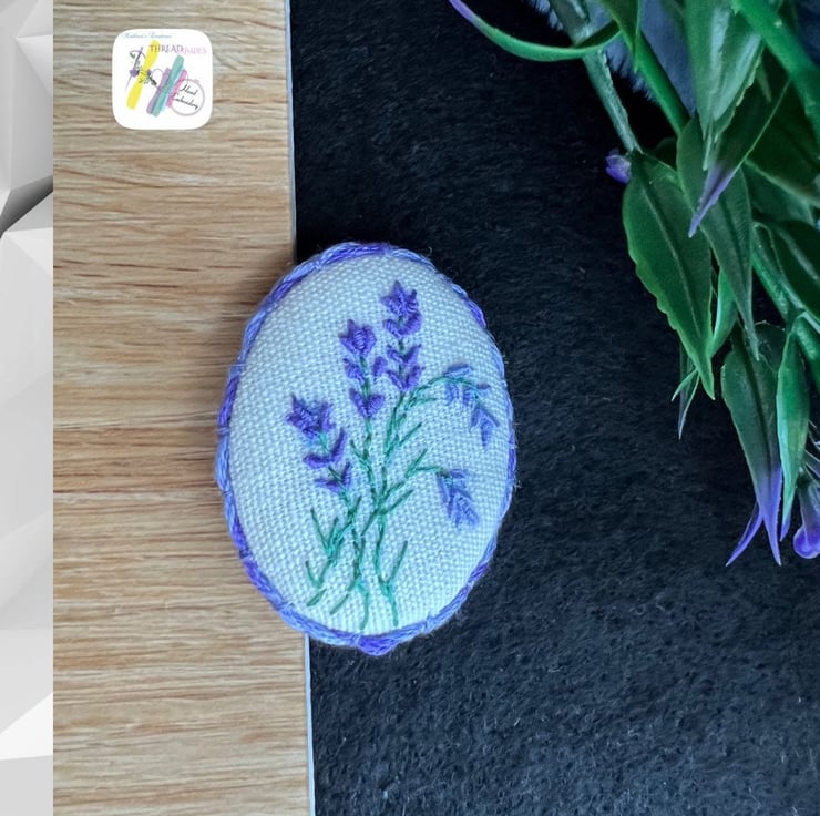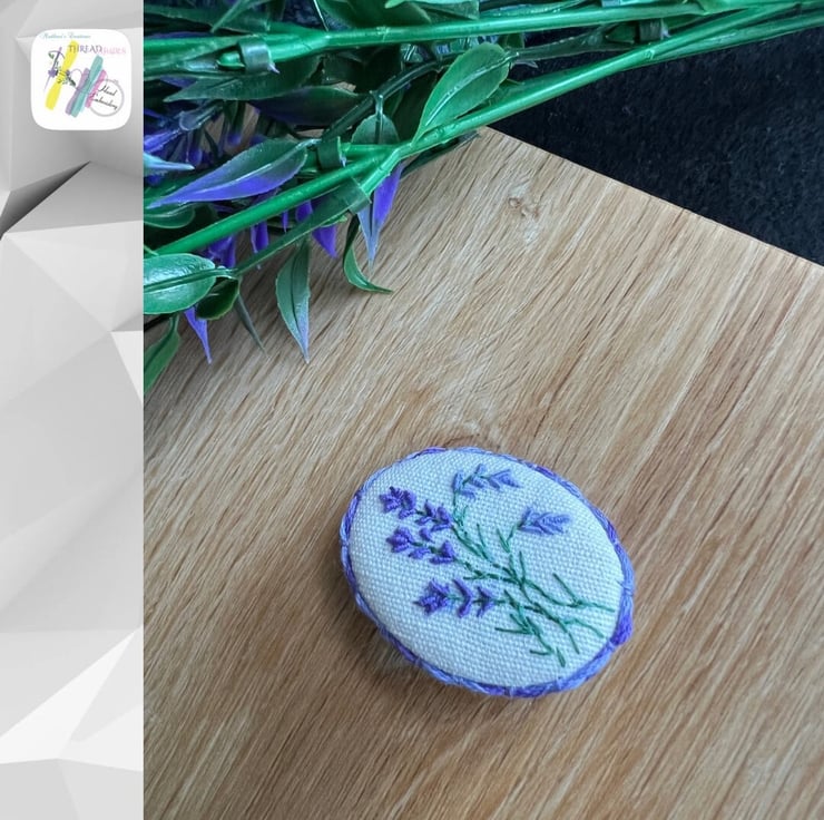 Beautiful handmade and hand embroidered brooch with lavender flower embroidery , ideal for gifting or add to your collection!