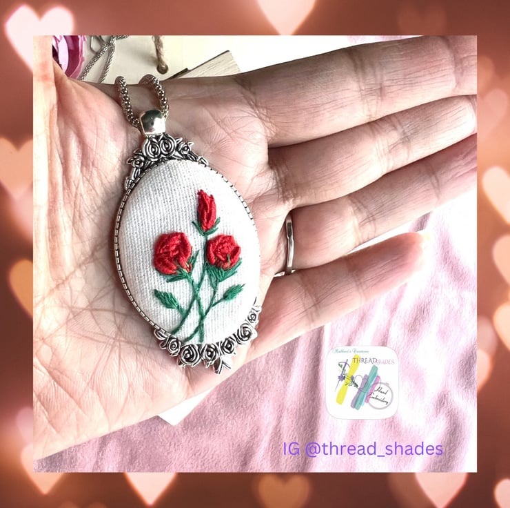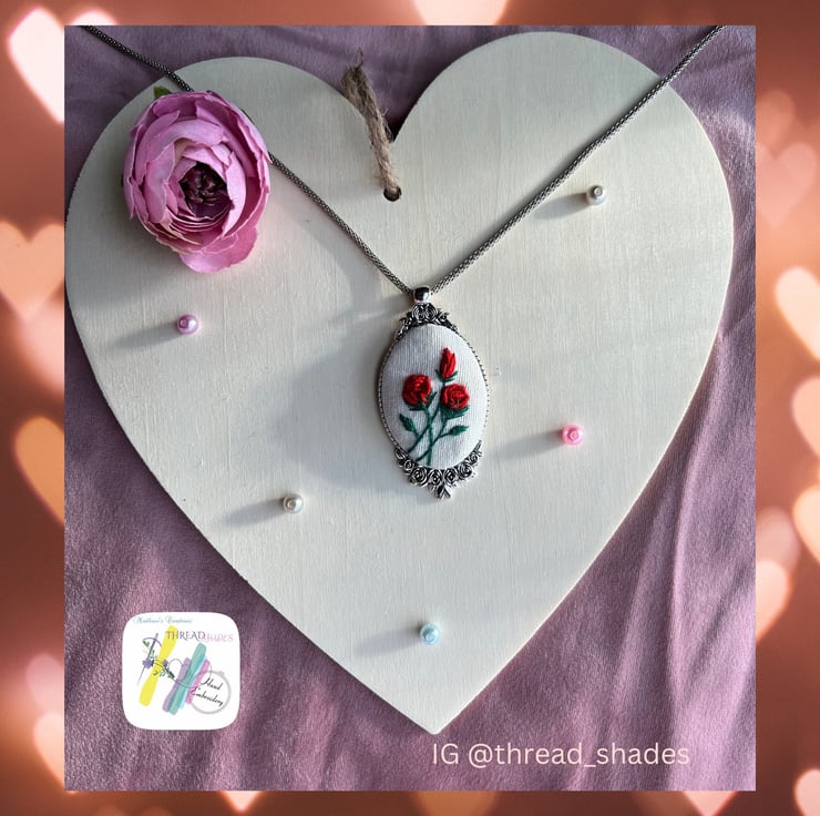 This beautiful red rose embroidery pendant is ideal gift . It would be lovely gift for Valentine s Day!!