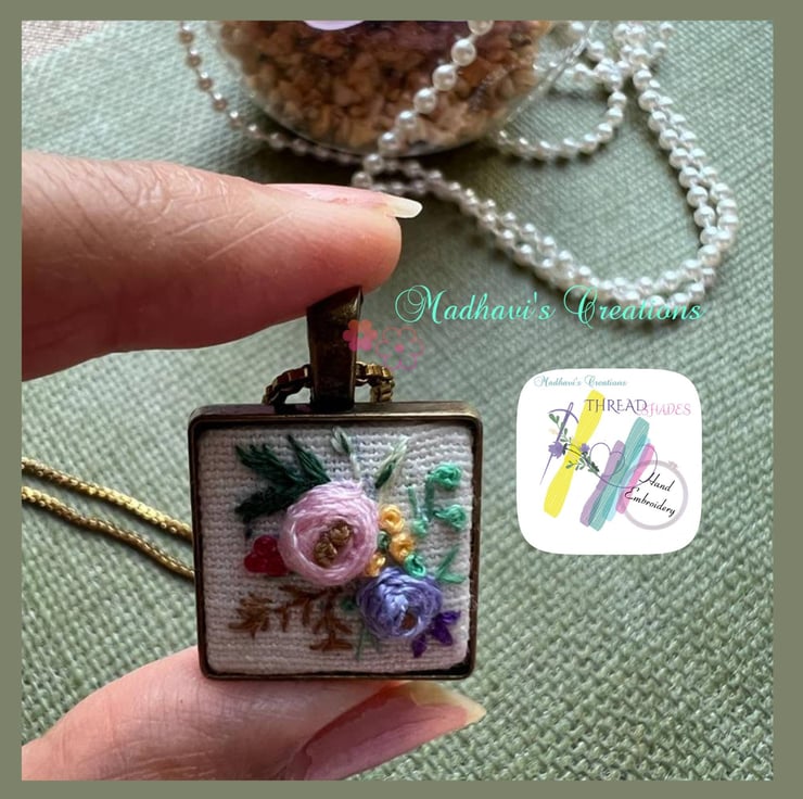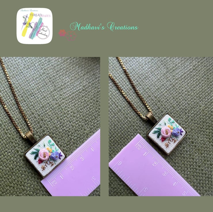 Embroidery necklace,Beautiful hand embroidered pendant, handmade with love, embroidered on handwoven fabric, used variety of hand embroidery stitches, It is ideal for gifting, used DMC thread for long lasting colors..