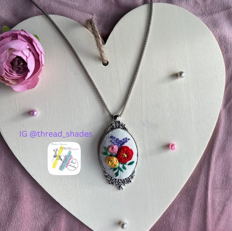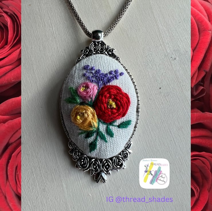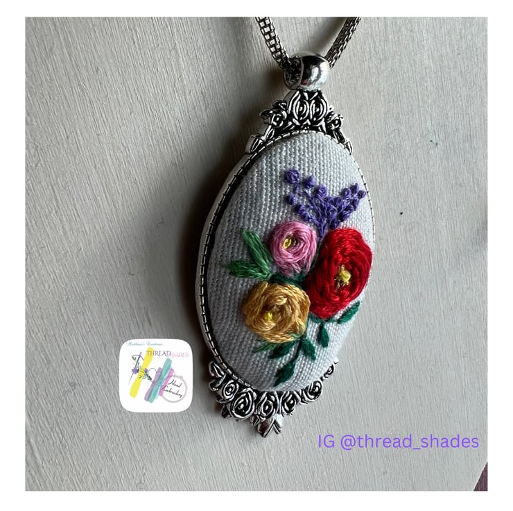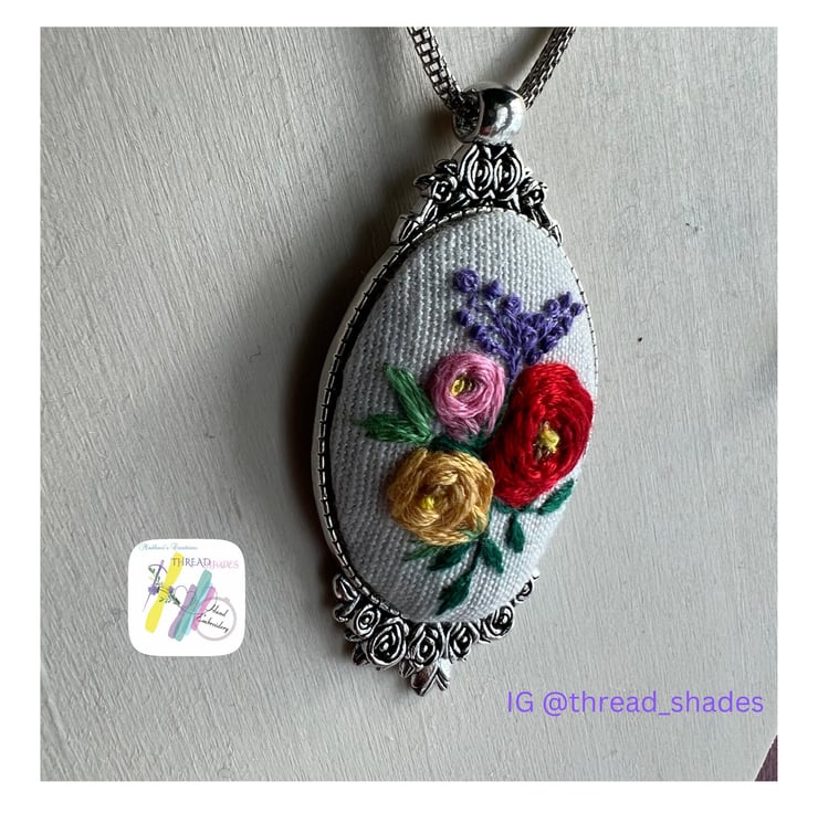 Product-Ready to ship hand embroidered pendant