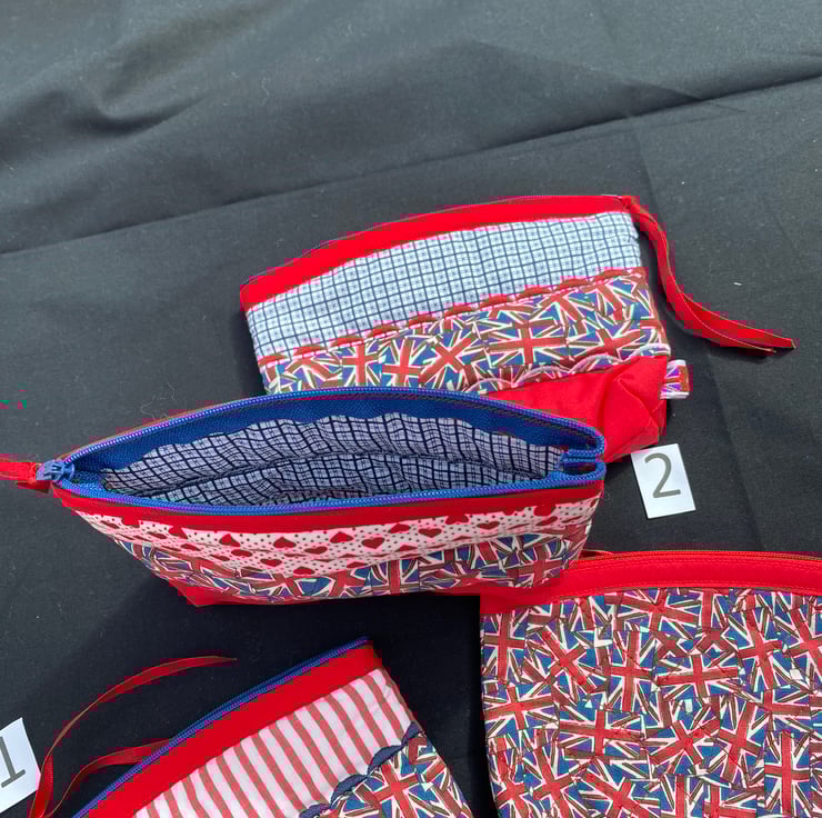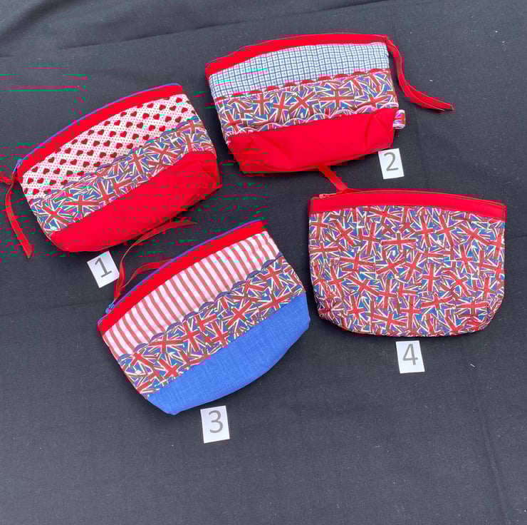 With red white and blue colours these cotton fabric small bags with a zipped closure are very patriotic for St. George’s Day. St. Andrews Day, St. David’s Day. St.Patrick’s Day.