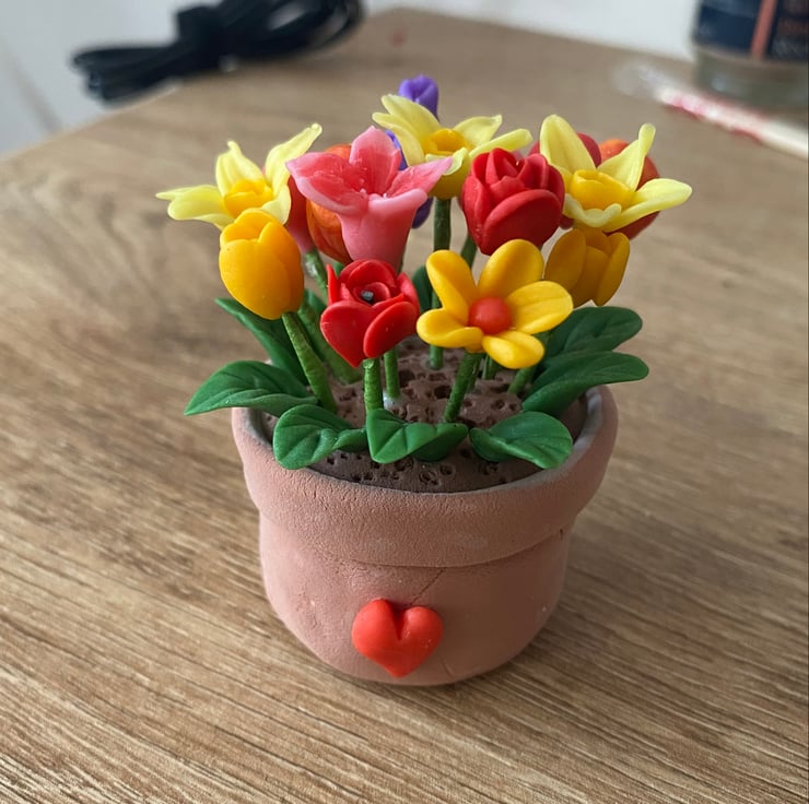 2x2x3 inches handmade clay flower pot with light clay and resin clay. Custom request are available.