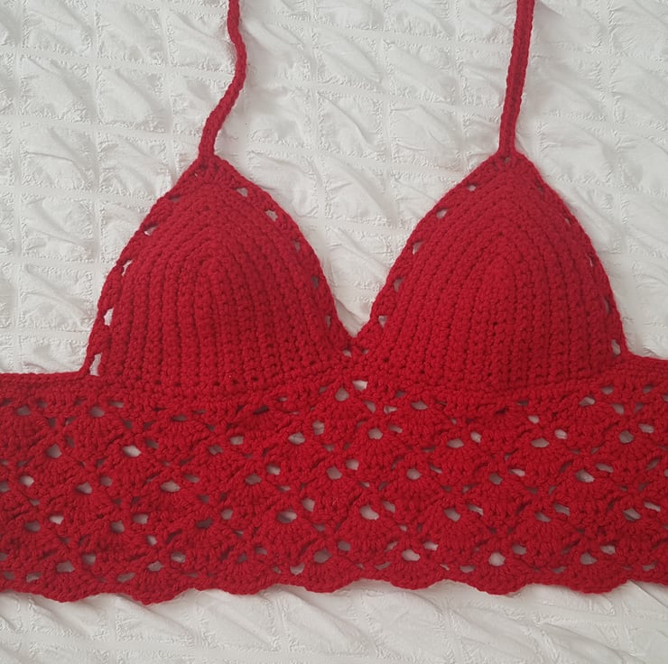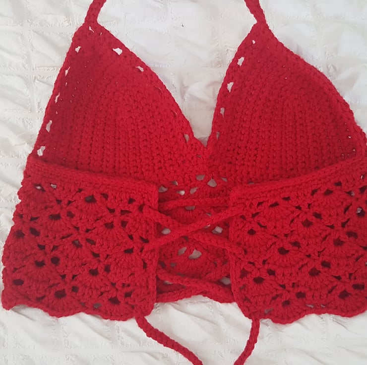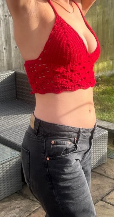 Small crochet crop top made with 100% acrylic yarn