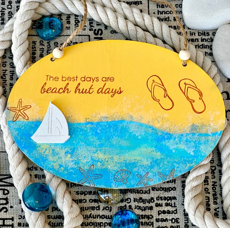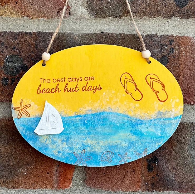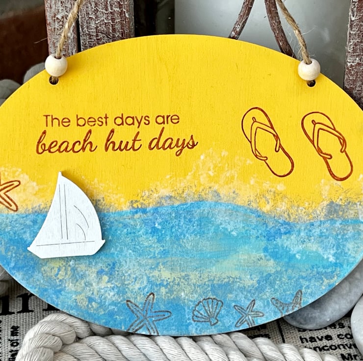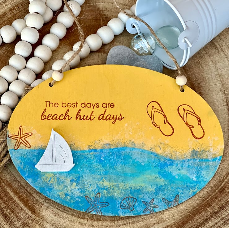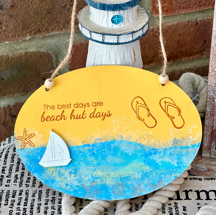 ‘Beach hut days’ Wooden Decoration with “The best days are beach hut days” message.