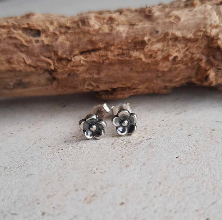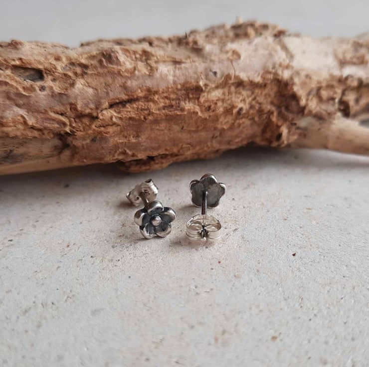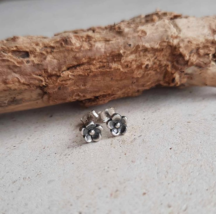 The flowers are securely soldered onto a pair of recycled sterling silver posts and the earrings are then oxidised with a patina to highlight all the lovely details, before being barrel polished in a tumbler. The earrings fasten with sterling silver butterfly backs.