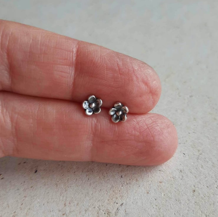 These floral stud earrings are small enough to wear either in the ear lobe, as a second hole earring or in a cartilage piercing at the top of the ear.