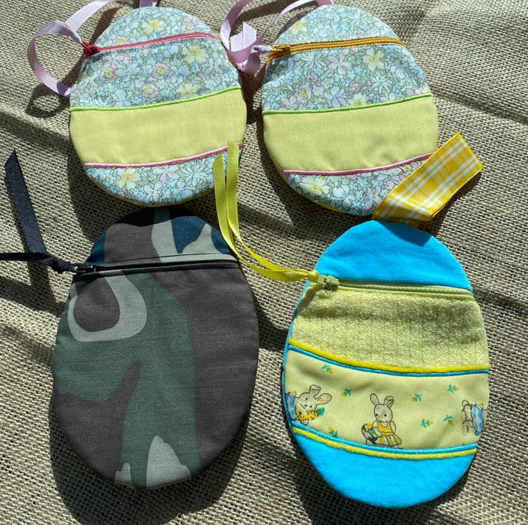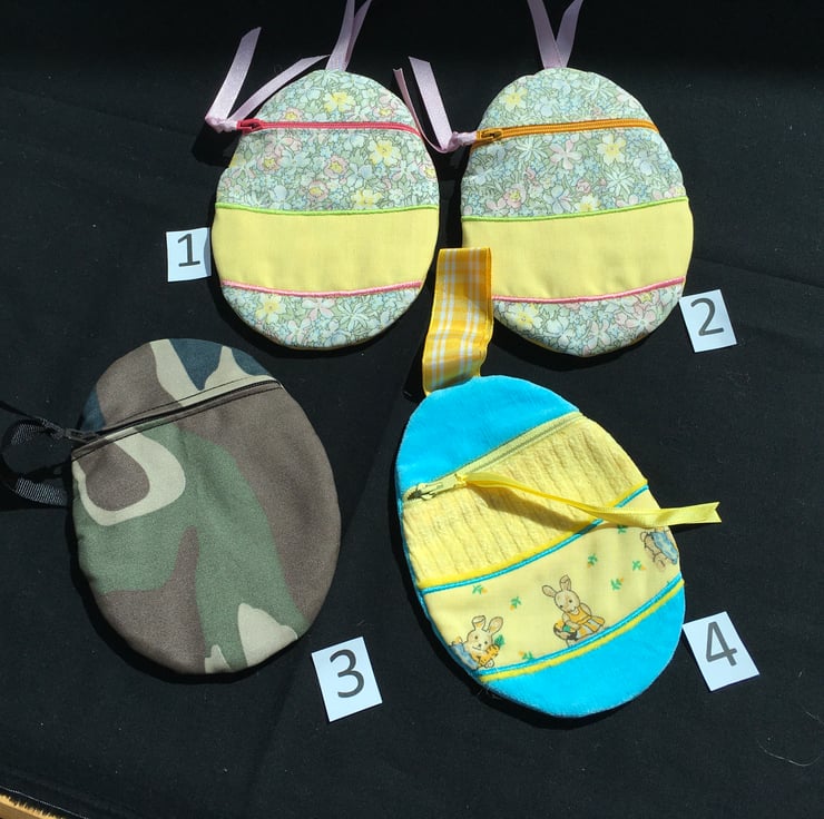 These bright, egg-shaped purses are a good way of keeping your child’s spending money safe on a day out with the School, Boys Brigade, Girl Guides, Church etc. Each has a loop to attach it to a belt, bag, rucksack etc. to keep it from being lost and a zip to fasten it securely. Each measures roughly 4” x 6” and I have four purses in this listing, please choose by number.
