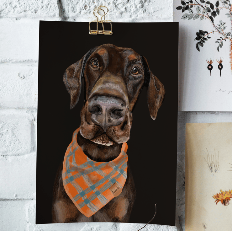 Let me create a Personalised pet portrait that I will send as a digital file so you can print on any item of your choice.